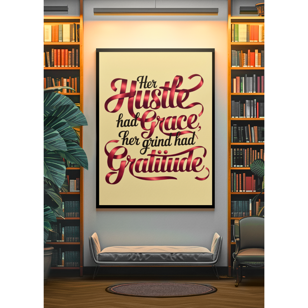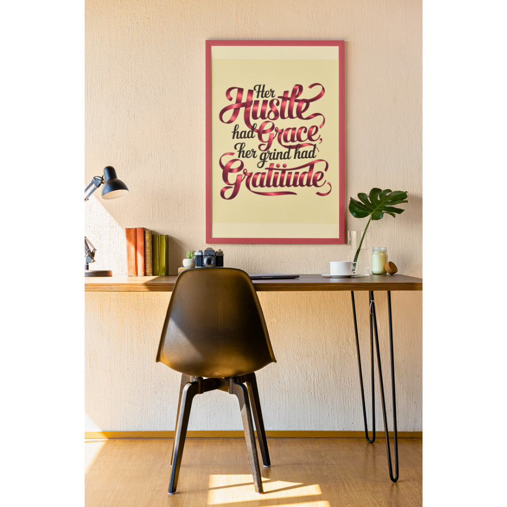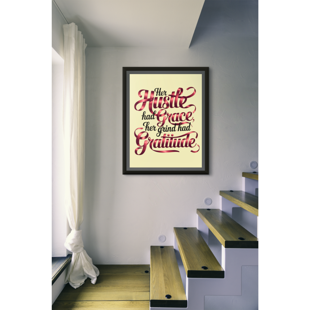 This artwork celebrates the balance of feminine strength and determined hustle. It’s a perfect gift for entrepreneurs, goal-getters, and anyone who moves through life with purposeful gratitude. Crafted as ready-to-hang print, it adds a touch of sophisticated inspiration to any space, from home studios to executive offices.